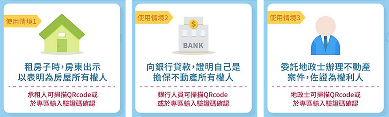 - 未取代紙本所有權狀/他項權利證明書,僅以查驗功能輔助確認產權。