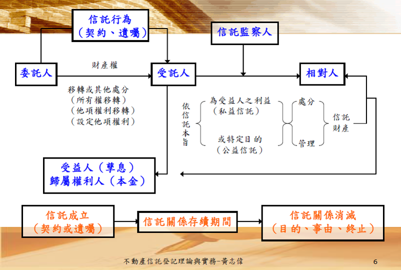 為因應社會對於信託業務需求,「信託法」於民國85年1 月26 日由總統公布,其中在不動產信託方面,「土地登記規則」亦增訂「土地權利信託登記」專章,作為地政機關受理人民申請不動產信託登記時處理依據。然而信託功能型態多樣,不僅是一般人保障債權或財團的理財工具,更和你我息息相關,只要您能理解箇中精妙,信託可以讓您規劃各種理財方式,或趨避特定風險,既然信託有這多樣功能,認識信託是現代人必修的一堂課。