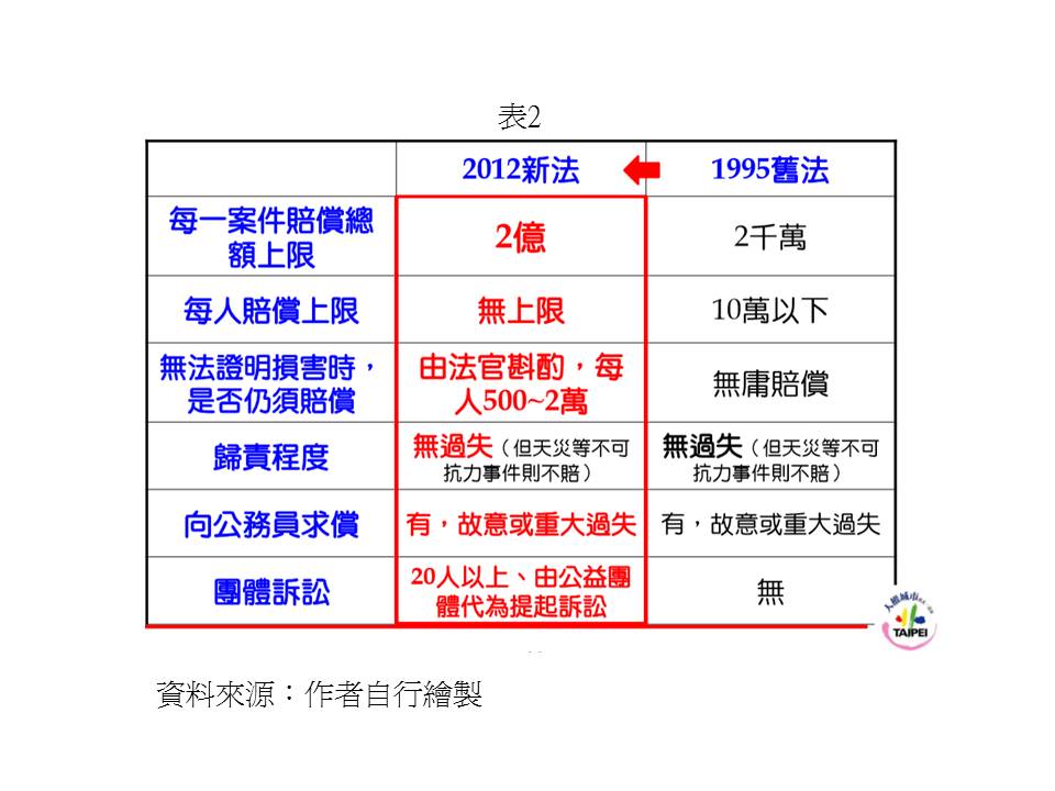 個資法在2012年進行修正時, 亦將相關民事責任規定有所調整,詳細情形可參見表2: