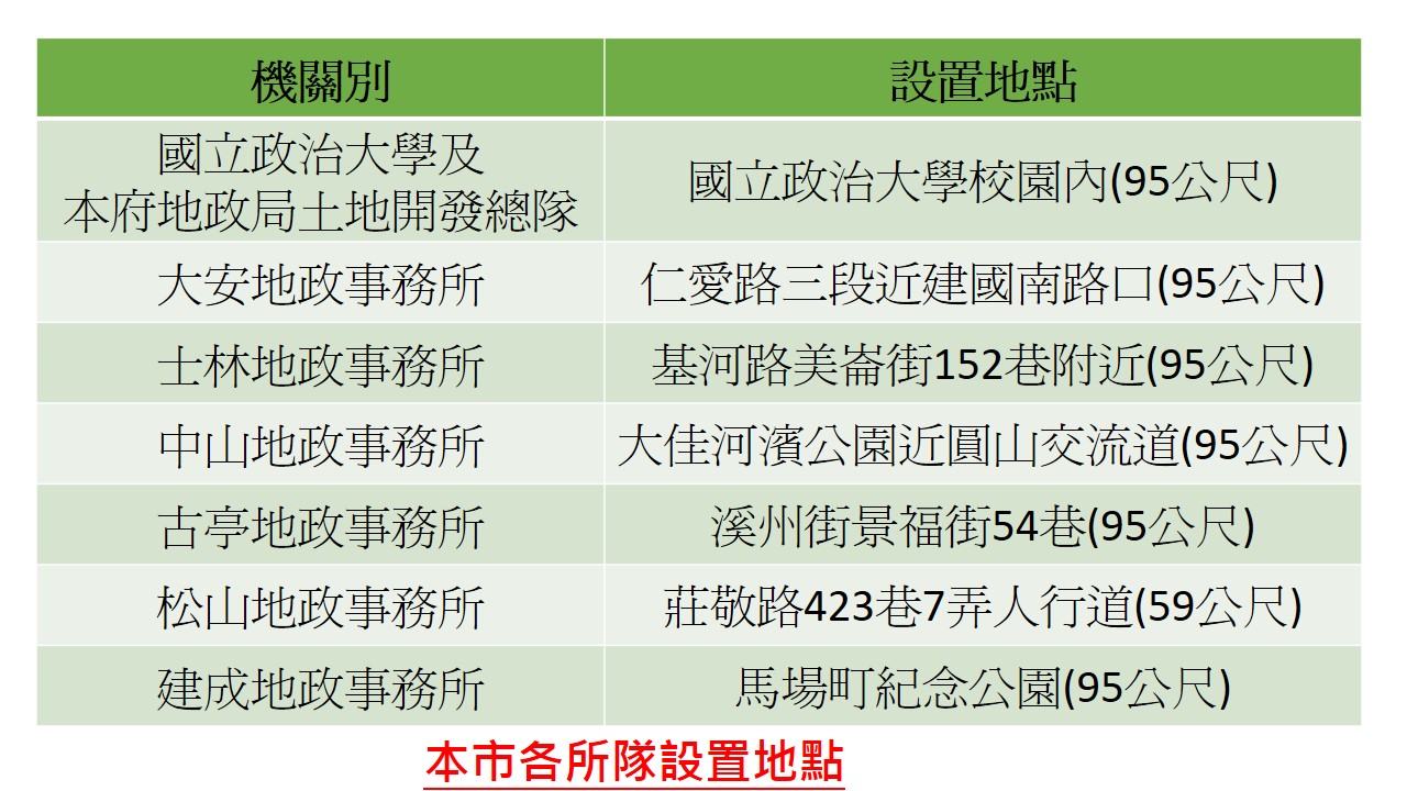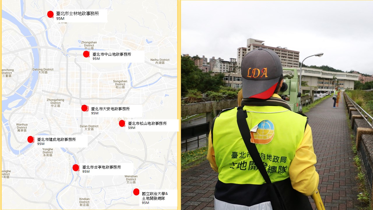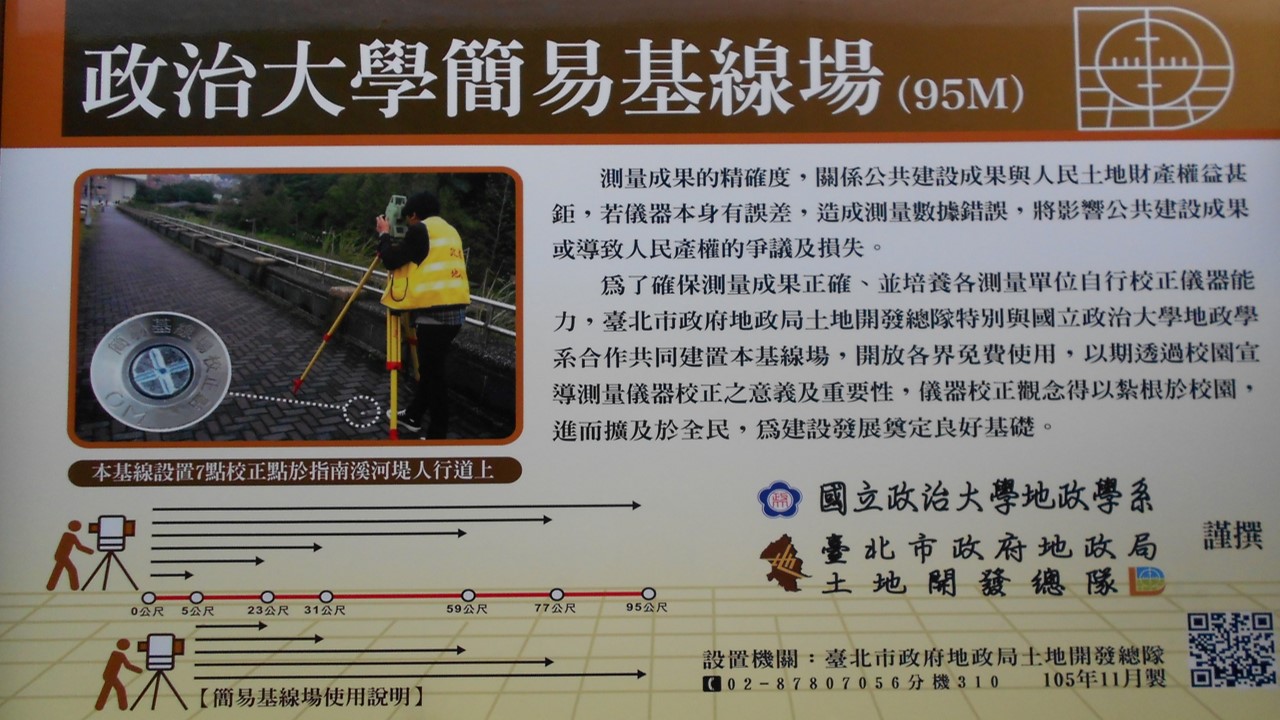 目前本市6個地政事務所及土地開發總隊均已建置簡易基線場,可在執行測量業務期間藉由簡易基線場確保儀器精度符合規定。其中11月10日甫啟用的政治大學簡易基線場為本局土地開發總隊與國立政治大學合作設置,希望透過校園宣導儀器校正之意義及重要性,進而讓正確的儀器校正觀念得以扎根校園。此外,亦能提升測量人員本職學能,優化測繪成果,且民眾極為重視之土地經界,能因測量成果品質提升,提高政府公信力,同時能為本市於推動各項相關建設時,提供更精確、完善資訊。