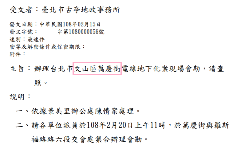 圖一 會勘通知單