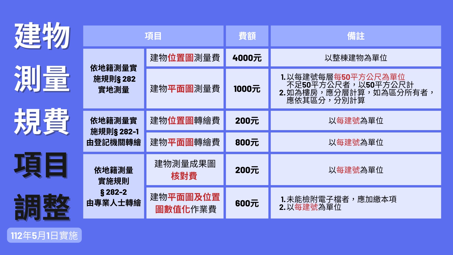 建物測量收費新標準將於112年5月1日上路囉!!