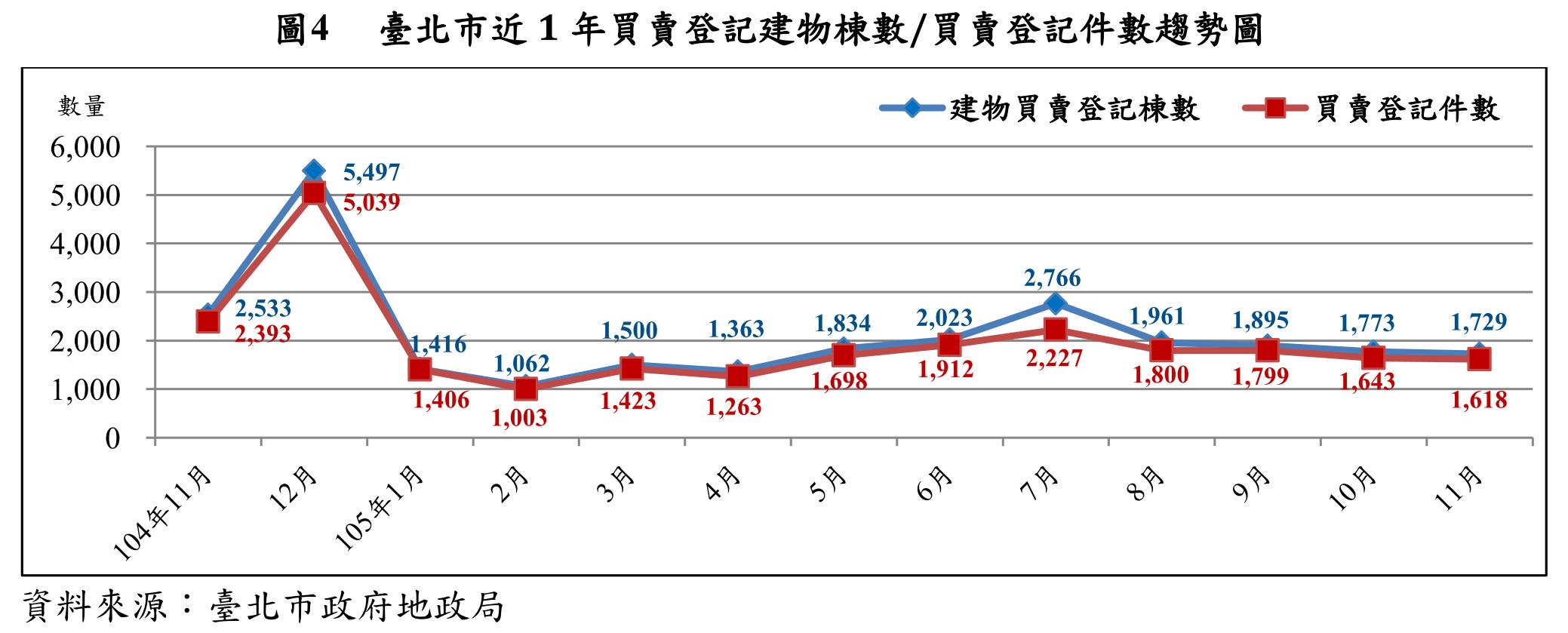 壹、 11月買賣案量與建物買賣登記棟數較上月微幅減少,較去年同期衰退