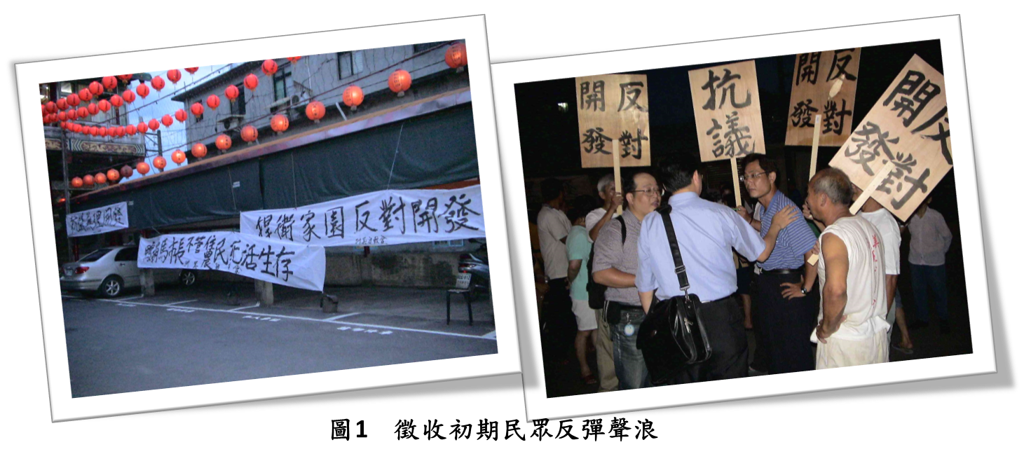 政府辦理開發初期,居民的心聲是「未蒙其利,先受其害」,抗拒拆遷、反對開發的心理源自於被迫遷離生於斯長於斯的土地,累世相承遮風避雨的家園將被拆除,也要揮別朝夕相親的故舊近鄰,平靜的生活遭到破壞,甚至即將面臨流離失所的生活壓力,因此居民因「被迫拆遷」而抗拒拆遷反對開發(圖1)。對居民而言,無論是在實質生活、情感層面,都將立即面臨困境與失落,這也正是市府執行區段徵收或市地重劃開發初期,必須克服的首要難題。因此,紓緩居民「被迫拆遷」抗拒的情緒,以同理心來化解是大型土地整體開發案的重點工作,更是執行地上物拆遷順利與否的關鍵因素。