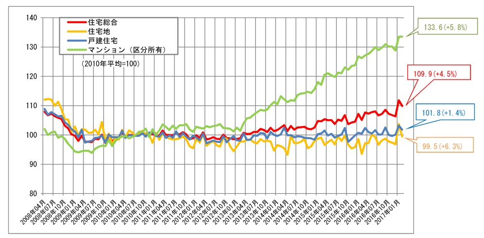 日本公私部門辦理不動產價格指數係由REINS之登錄資訊進行研究、分析及發布,發布情形如下:
