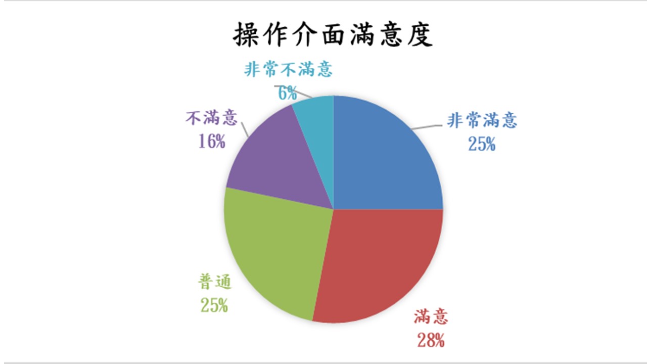 對於本系統操作介面滿意(含非常滿意、滿意及普通)者,達78.1%,不滿意者為21.9%
