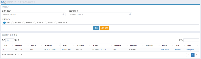 如果申請案件經撤回或駁回,現在也可經由智慧地所系統線上申請退費喔!您只要在智慧地所系統的「線上退費作業」裡填寫退費申請資料,並上傳相關附件電子檔後送出,經地政事務所受理並完成退費後,系統將自動發送手機簡訊通知您,您也可以直接利用系統內的「地政規費退還查詢作業」功能查詢退費申請進度(如圖1)。