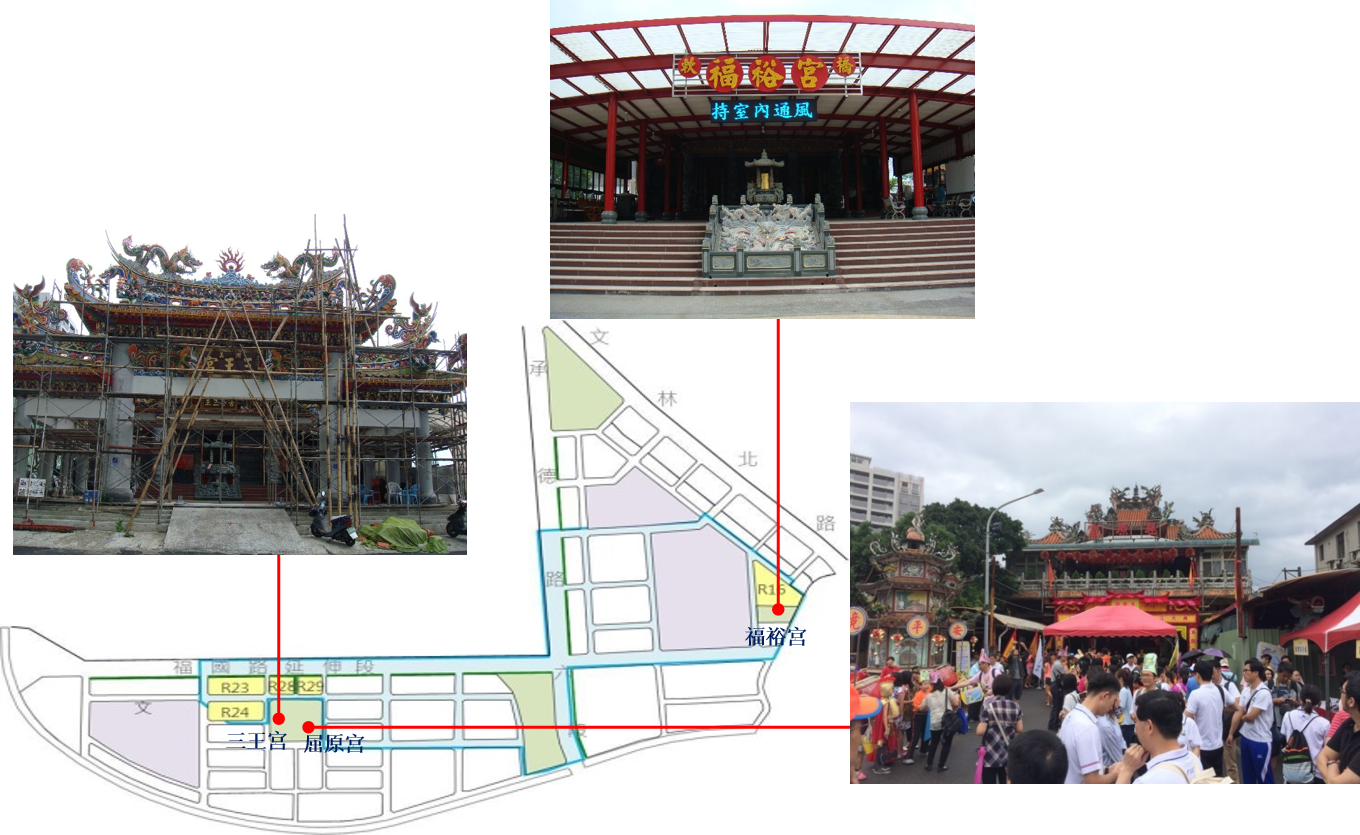 屈原宮、福裕宮及三王宮是當地居民重要的信仰中心,為避免在地文化特色及地方信仰因開發而消失,開發時特別將3座寺廟規劃安置於開發區內的公園用地,保存民眾信仰,留住當地居民的共同記憶點。