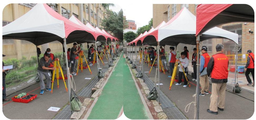 術科測驗模擬外業測量,亦分兩階段進行,首先進行儀器架設熟練度測驗,3分鐘內架設儀器並且完成經緯儀定心、定平,不只考驗熟練度,也考驗考生抗壓能力,很多考生因為太緊張而無法順利在時間內完成架設。