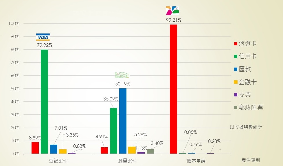 登記案件多以信用卡及匯款繳納