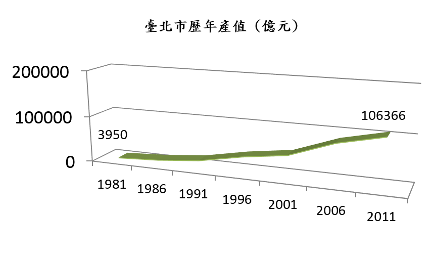 圖3. 臺北市歷年產值成長情形(資料來源:行政院主計處工商服務業普查)