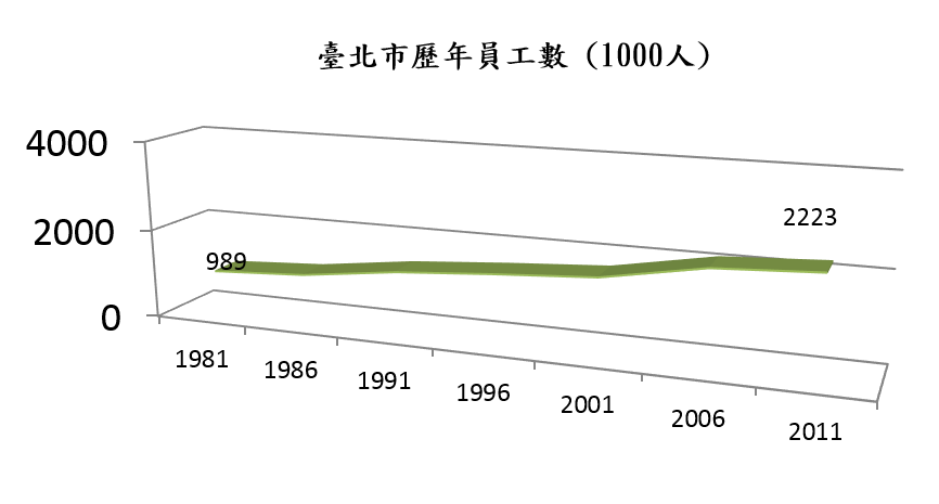 圖2. 臺北市歷年員工數成長情形(資料來源:行政院主計處工商服務業普查)