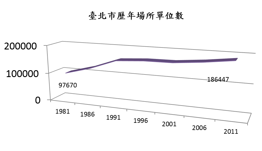 圖1. 臺北市歷年場所單位數成長情形(資料來源:行政院主計處工商服務業普查)