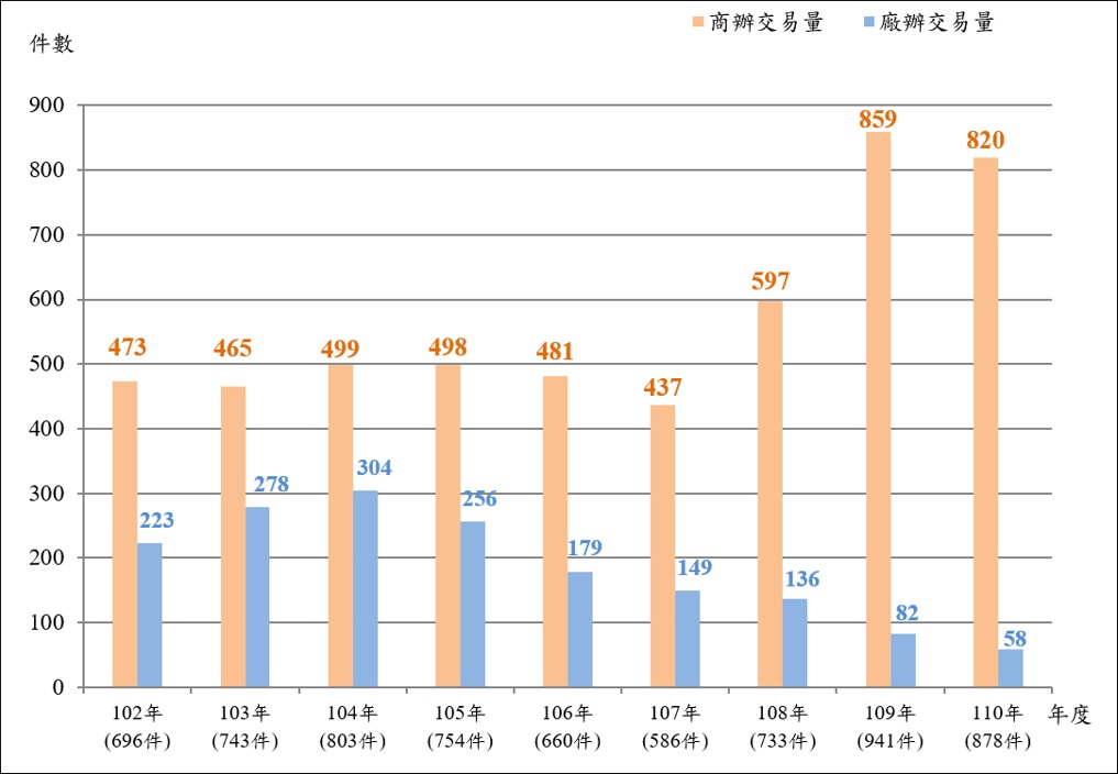 110年商辦租賃交易量減少4.54%,廠辦連6年下滑