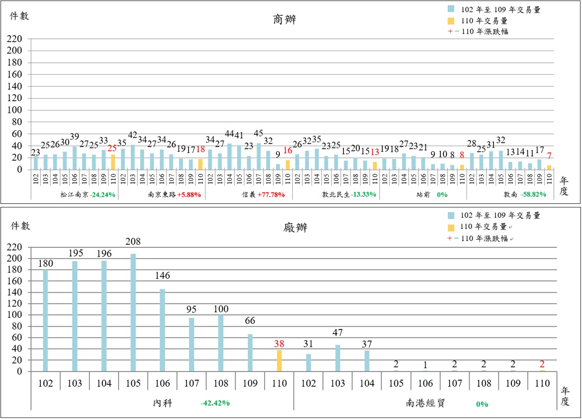 為讓各界綜覽臺北市辦公及店面市場交易動態,地政局以110年實價登錄資料為基礎,就全市及各主要商圈辦公室與店面租賃交易案件進行統計,冀由交易價量變動分析,呈現商用不動產市場脈動趨勢。