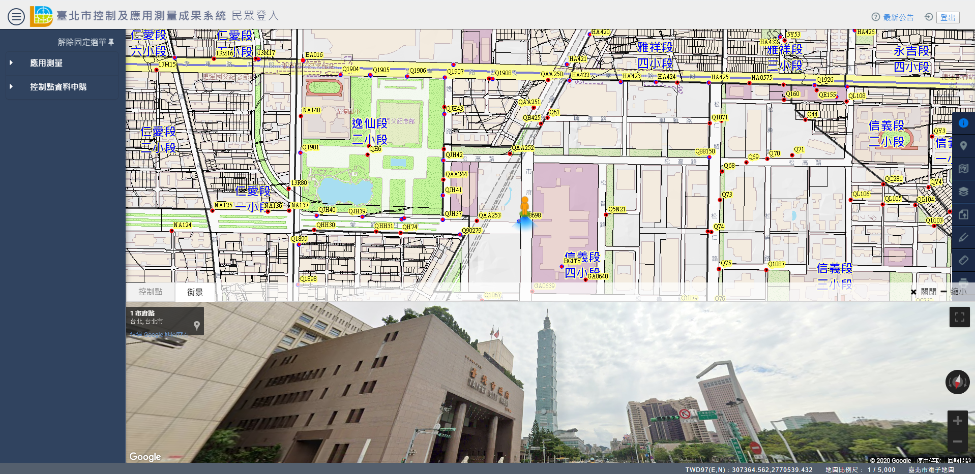 臺北市政府地政局土地開發總隊原有「控制測量成果管理系統」及「應用測量成果管理系統」,分別管理全臺北市控制點及臺北市政府各機關的應用測量成果,民眾須因應不同需求分別使用兩個系統瀏覽不同圖資,較為不便。為便利使用者操作並提升系統運作效能,爰於108年辦理兩個系統整合,整合後系統名稱為「臺北市控制及應用測量成果系統」,並於109年4月22日正式上線。