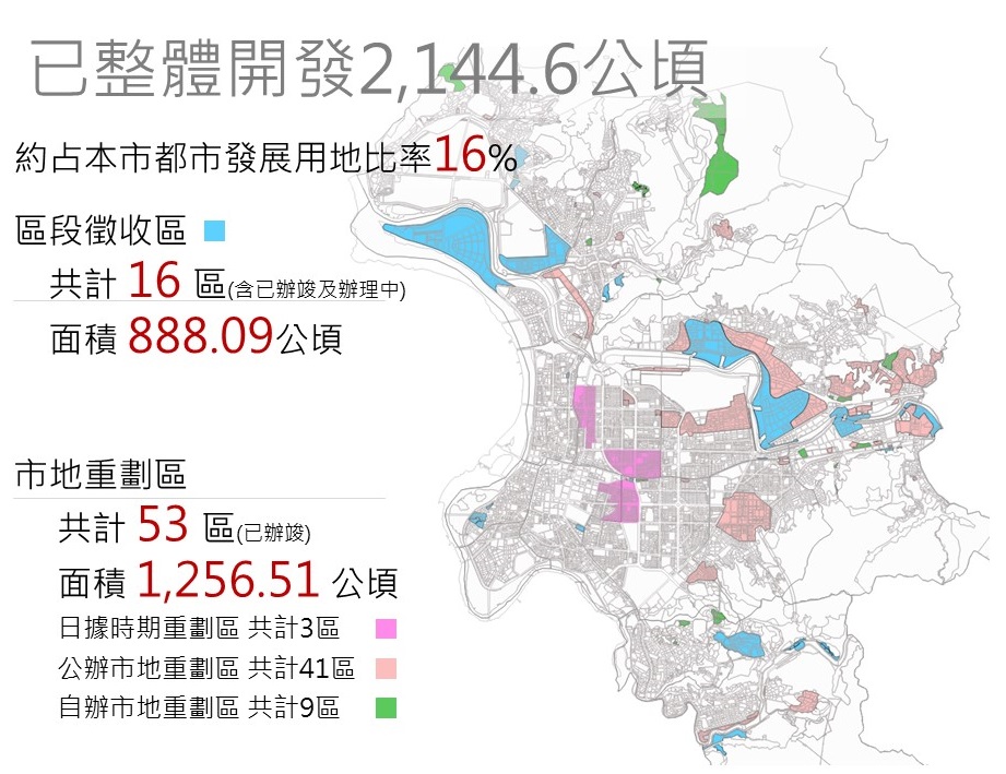 臺北市目前已辦竣及辦理中的整體開發區面積達2144.6公頃,約占臺北市都市發展用地比率的16%,取得公共設施用地總面積超過800公頃,且大多屬於無償取得,不僅提升市容環境品質,也減輕政府財政壓力(如圖2)。