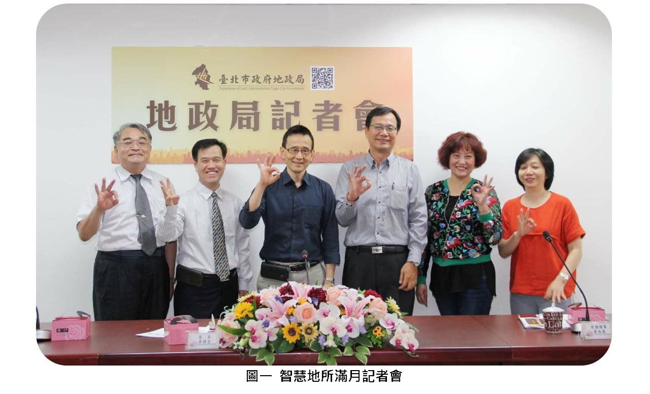 臺北市地政局於5月17日舉辦智慧地所滿月記者會公開表揚並感謝申辦案件量(截至4月29日)的前3名使用者—黃勝榮地政士、黃玉蘭地政士、李欣容地政士,記者會中亦分享系統使用心得與建議。(圖一)