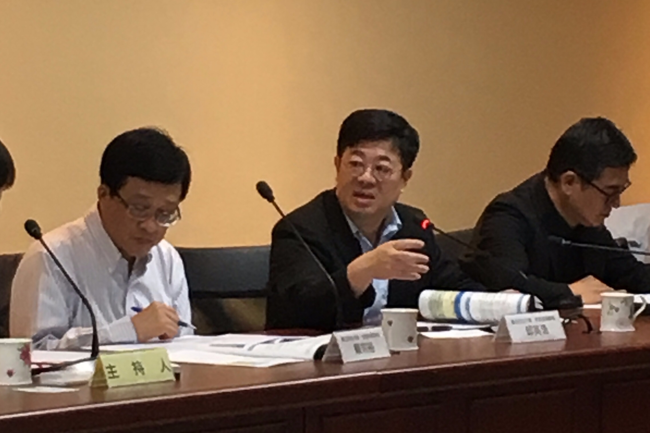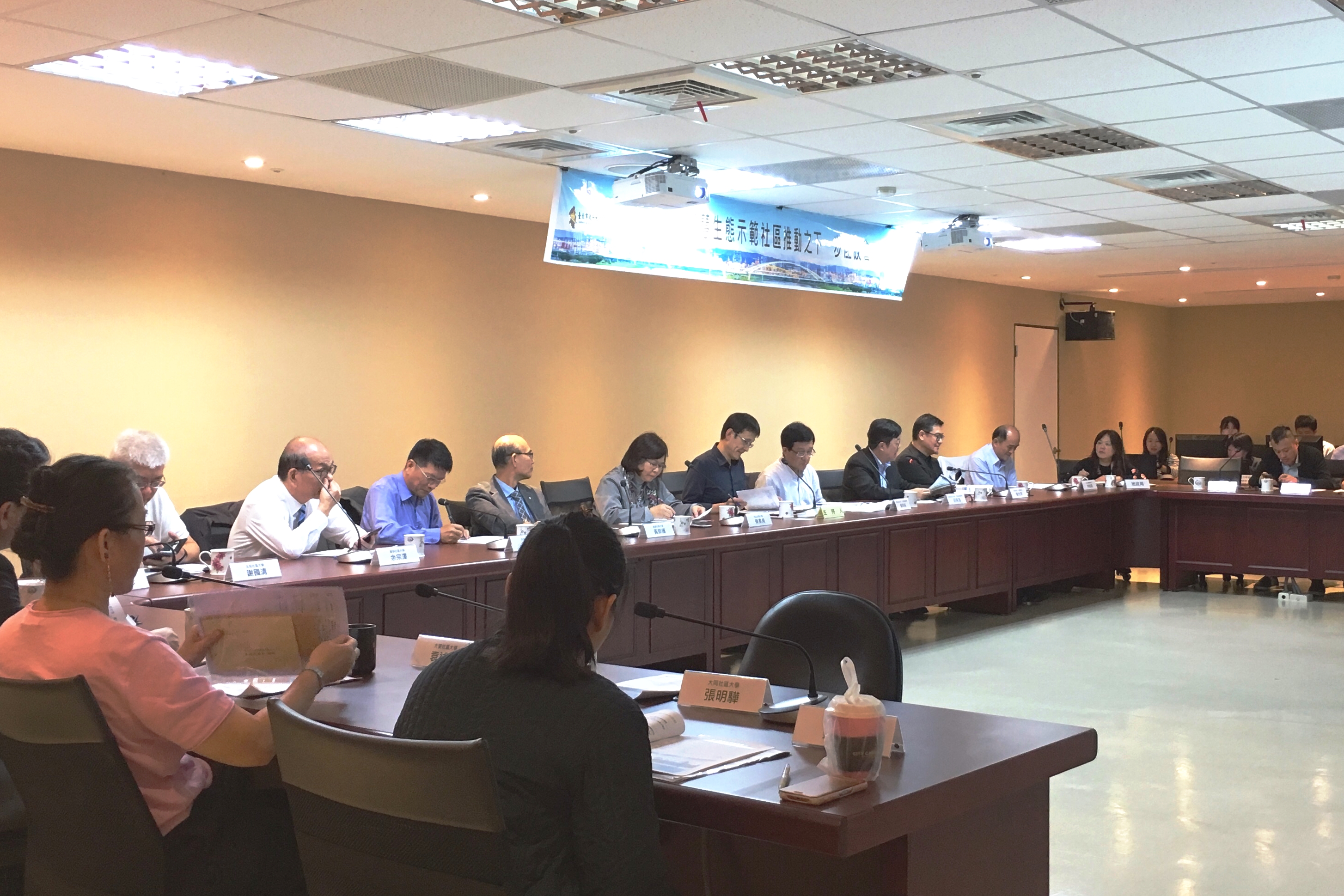 在「智慧生態社區專家開講」同一時間,地政局開闢另一現場召開「2017臺北地政週系列座談─智慧生態示範社區推動之下一步」(圖11、圖12),邀請臺北市12所社區大學、合作院校、產業界、學界及市府相關機關參與座談,共同討論107年臺北智慧生態社區的推動方向,與會者提出之建議,地政局也將據以納入後續推動執行。
