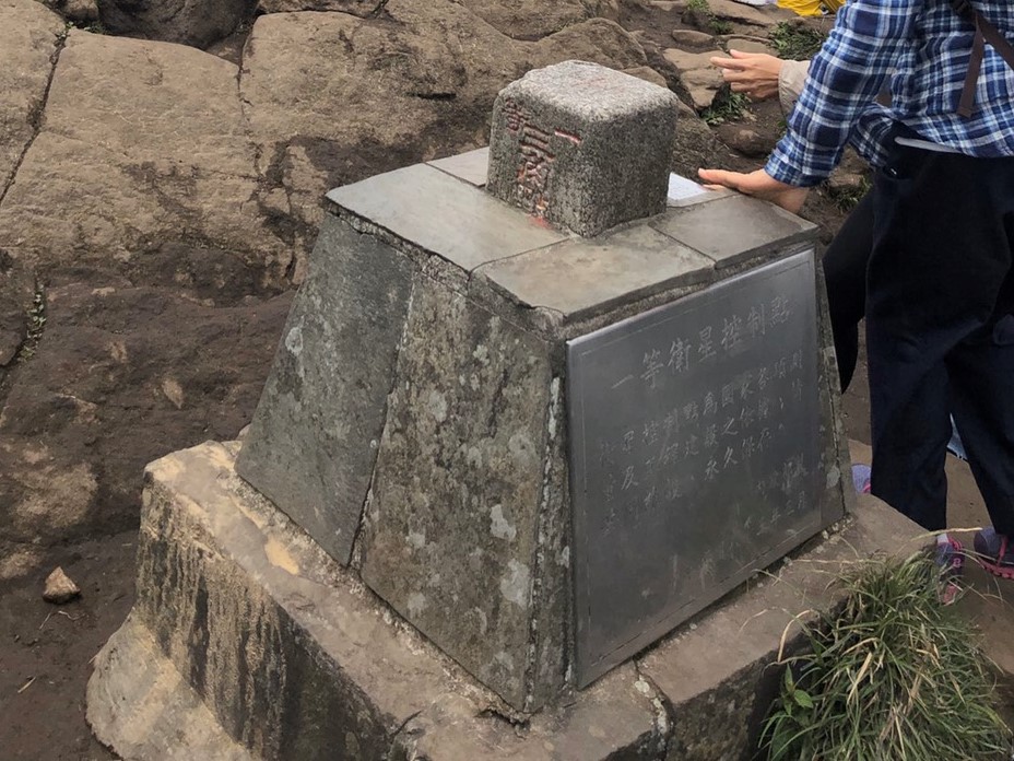 終於,登上了七星山頂,在沿途和山頂都遇上不少登山人,每個人登山的目的多有不同,而這日開發總隊登山的目的之一就是這一點,七星山主峰的「一等衛星控制點」!