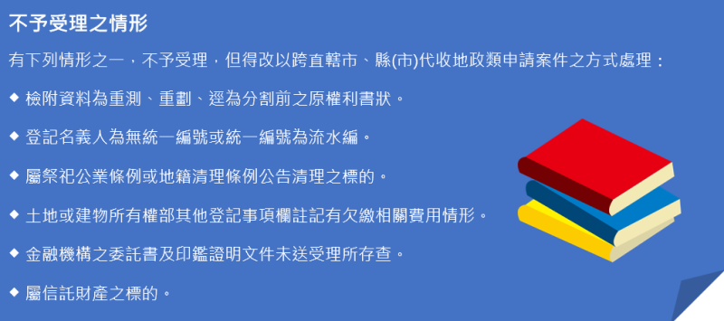本市任一地政事務所均可受理全國各地的10項登記案件