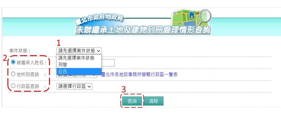 民法第1138條規定,配偶相互有繼承權,不動產繼承沒有性別區分。相關辦理繼承登記資訊,可至臺北市政府地政局《未辦繼承登記專區》查詢,如您不知道親人在臺北市遺留下來未辦繼承被公告、列冊管理的土地、建物有哪些,透過「未辦繼承土地及建物列冊管理情形查詢」,選擇案件狀態為公告或列管,並選擇輸入被繼承人姓名、地所別查詢或行政區查詢,即可快速取得被公告、被列冊管理土地資訊,減少蒐集資料時間。