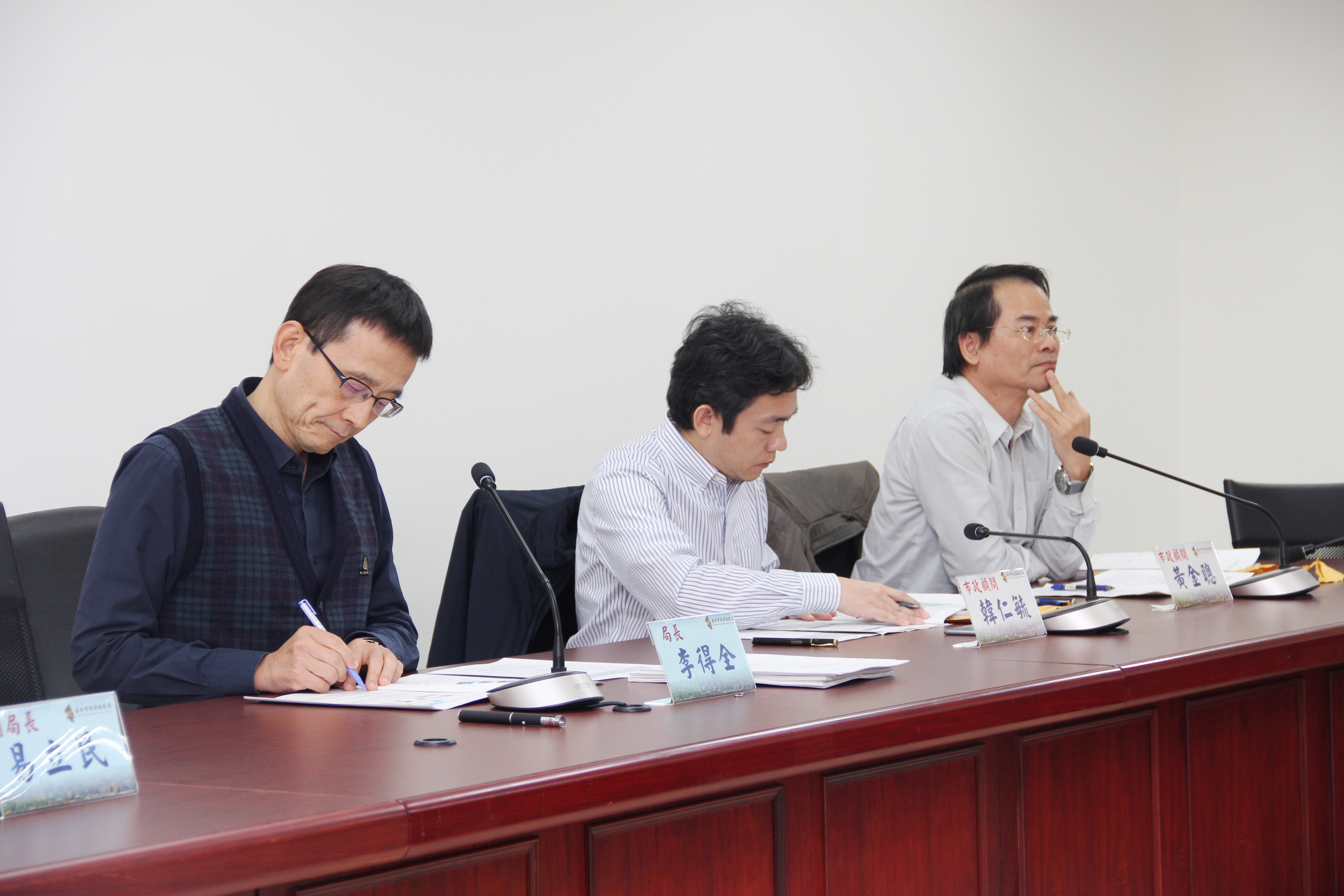 圖1.市政顧問紀聰吉、彭建文、韓仁毓、黃金聰與局長李得全參與評審