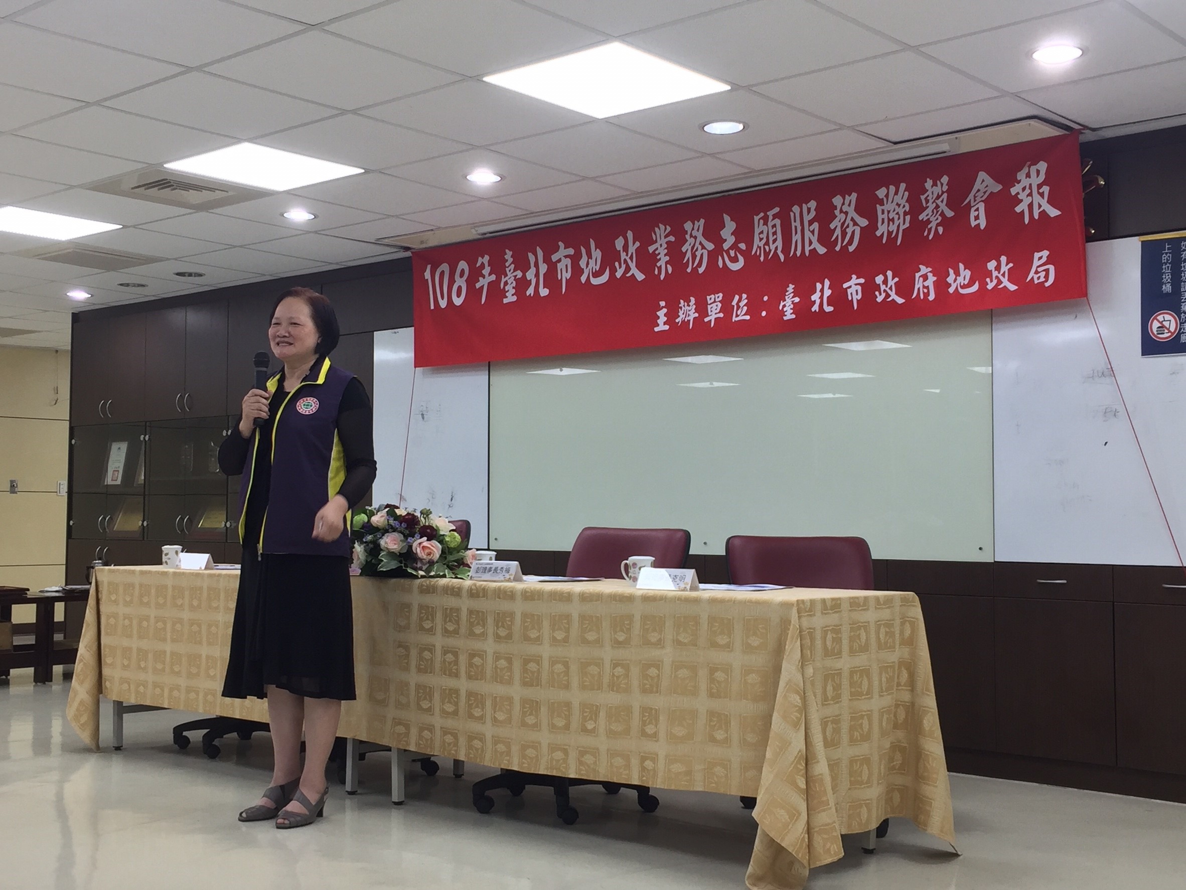 張局長於會報上表示:「特別要感謝各位志工的付出與協助,地政工作本身較具專業性,透過各位志工在民間工作上的豐富經驗,提供民眾指引、諮詢、解答疑難,更指導同仁與民眾接洽、溝通,地政志願服務透過公私協力的方式提供了寶貴的經驗,是本局強而有力的友軍。」,「志願」是真誠的表現,「服務」是愛心的延續,地政志工是長久以來地政局推行便民服務措施重要的第一線人員,每年所舉辦的臺北市地政業務志願服務聯繫會報,除了讓志工們可以一同團聚、分享服務心得外,更讓本局有機會向志工們表達肯定及感謝,此外透過會報的上雙向溝通及討論,更得以廣納志工建言使本局各項施政更能切合民眾的需求。