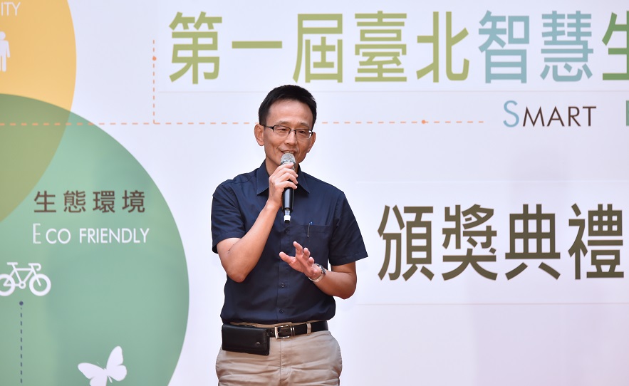 典禮首先由地政局李得全局長說明本屆設計競圖活動(圖二),再由評選會議召集人何明錦委員進行各類得獎作品短評,最後由柯文哲市長致詞(圖三)。市長表示,一個社區的發展希望當地居民「自己的社區,自己規劃」,開放政府、全民參與是一個政治理念,但是要如何落實,這要從各個不同的方面去做到。市長也提到,這次智慧生態社區設計競圖共有21件作品,感謝從頭到尾參與的民眾,提供在地居民的意見,讓設計更加合理。臺北市政府的願景是要建立宜居、永續的城市,這就要從智慧生態社區開始,明年會繼續舉辦競圖,希望透過每年的舉辦,將一個、一個社區完成,讓臺北成為宜居、永續的城市。